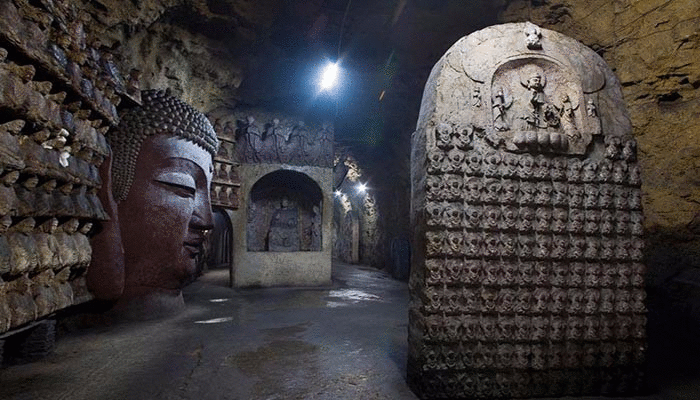 千佛山古稱歷山,因為古史稱舜在歷山耕田的緣故,又曾名舜山和舜耕山。隋開皇年間,因佛教盛行,隨山勢雕刻了數千佛像,故稱千佛山。